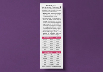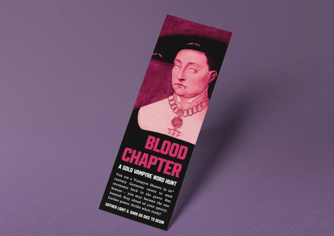 | Tags | bookmark, books, Horror, hunter, journaling, One-page, Solo RPG, Tabletop role-playing game, Vampire |